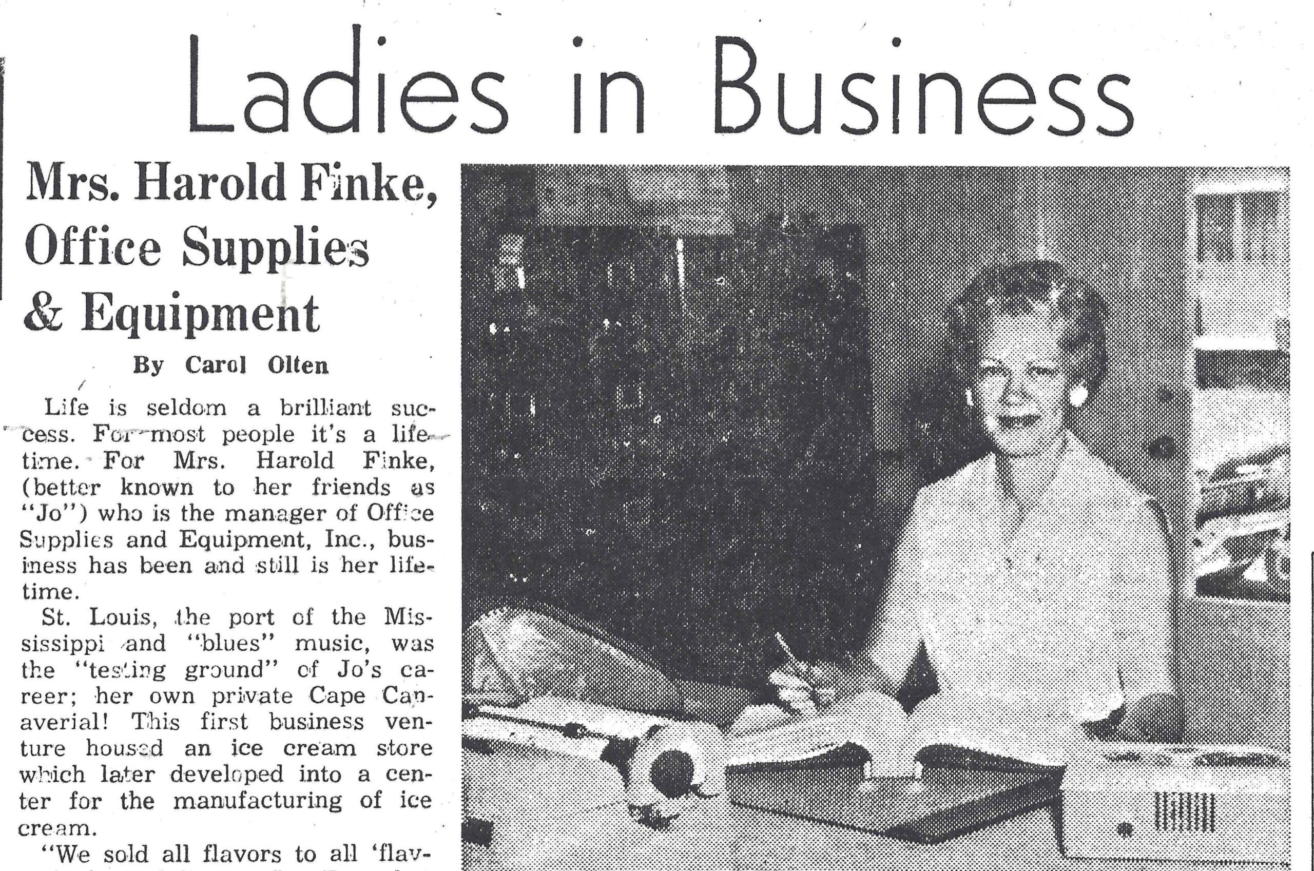 In the article, owner Wanda Bade reflected on her many years with the store. Wanda first began working at Office Supplies & Equipment in 1974, learning the business directly from founders Harold and Jo Finke.