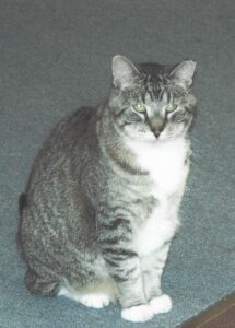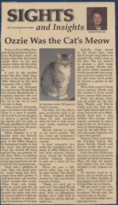 Ozzie originally came to the store in April of 1998, after Sandra Jung visited the Franklin County Humane Society to find a kitten for her daughter. While there, a friendly tabby caught her attention. When Sandra returned to the shop and asked Wanda Bade if they could keep him as a store cat, the answer was yes, and Ozzie soon made Office Supplies & Equipment his home.