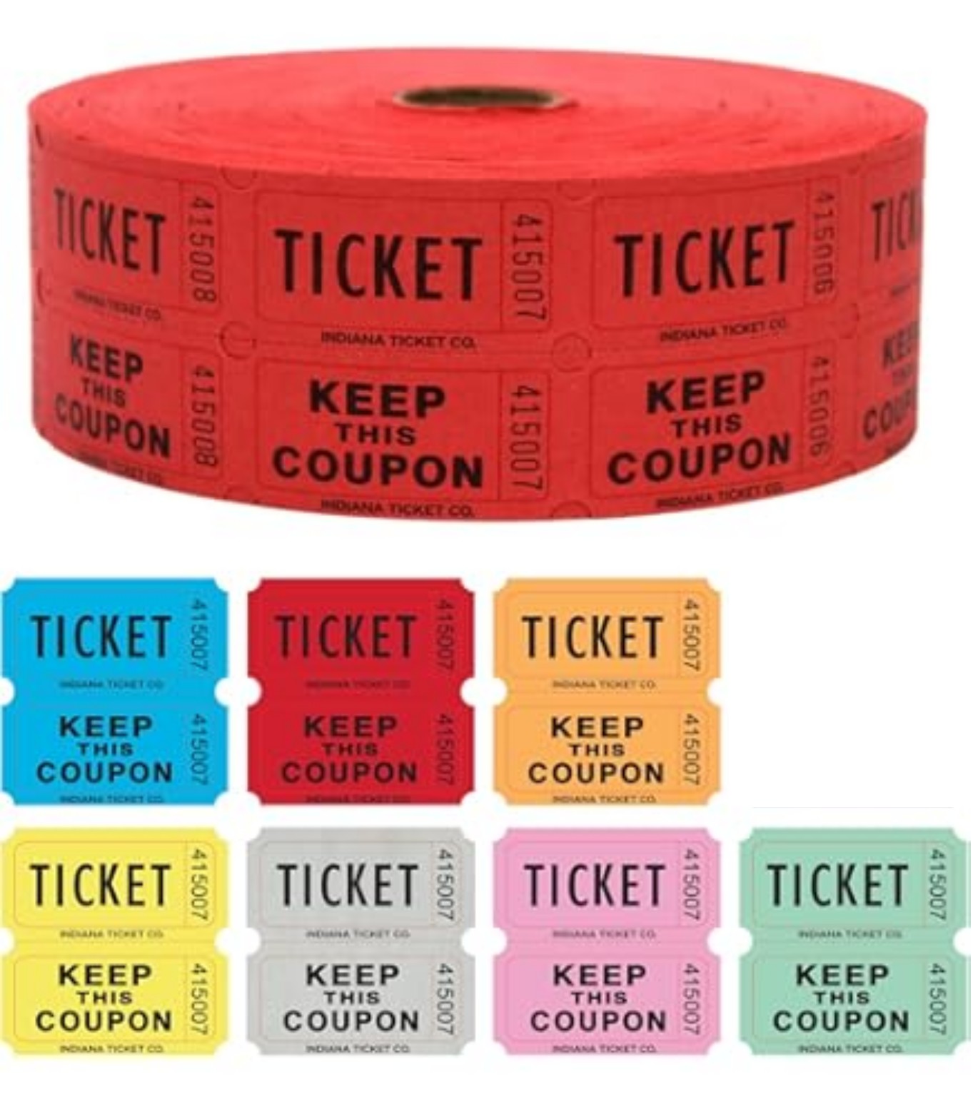Numbered 1″x 2″ tickets are available in a variety of colors .