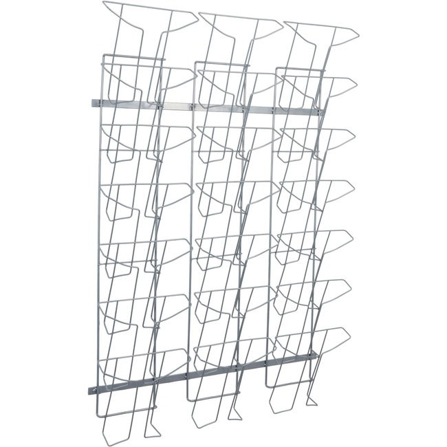 Literature display features 21 compartments and wire construction to provide a space-saving way to keep your items displayed. Stylish design creates a clean appearance while providing great visibility to your literature. Large-capacity compartments can hold a single, 400-sheet, A4-size item. Wall-mounted literature display is perfect for documents, magazines, newsletters and more.