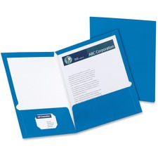 Portfolios are made of distinctive high-gloss laminated cover stock to resist soil and moisture. Twin-pocket folders have generous, twin wing-style pockets that hold 100 sheets of letter-size loose papers. Each folder has a die-cut, business card holder on inside left pocket.