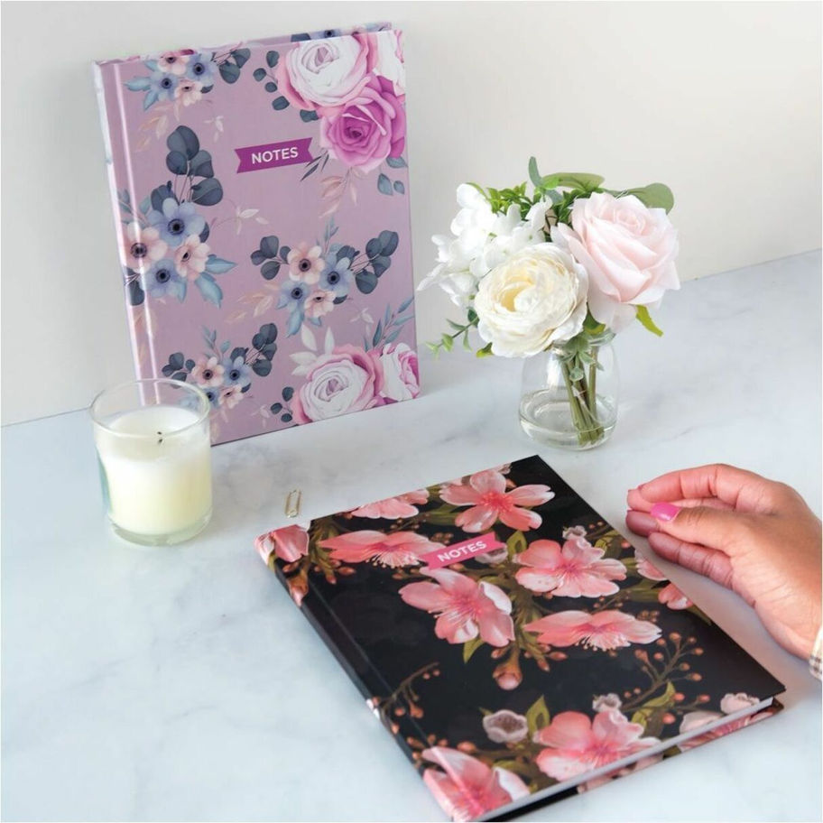 Cherry Tree Lane Notebook helps bloom inspiration, thoughts and ideas among the pages. Versatile binding allows you to fold back the smooth, hard cover and lay flat for a sturdy writing surface. Colorful self-adhesive tabs, index sheet and dedicated areas for dates and page numbers helps you pay attention to the details. 192 acid-free pages come ruled with margin and contains print made from vegetable oil-based ink. Sheets contain 100 percent post-consumer recycled paper.