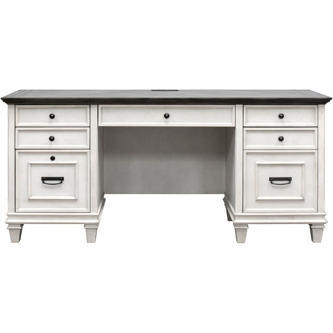 The Hartford Credenza combines bold lines with a weathered, vintage finish and classic style elements. Distressing allows the natural wood grain to show through with added detail for an aged appearance. Top and back panels offer contrast with beautifully patterned veneers. Metal hardware and accents complete the design aesthetic for a look that is right at home in either a classic or more relaxed, eclectic home. It also includes a drop-front keyboard drawer, three utility drawers and locking file drawer.