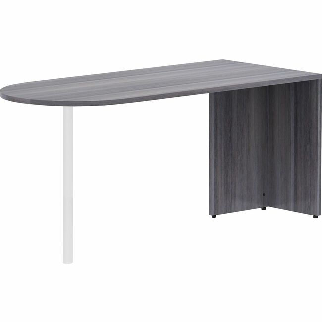 Peninsula is part of Lorell Essentials Series Laminate Furniture with high-quality laminate construction and metal-to-metal, cam-lock connections. Peninsula comes in two boxes, and LLR69381 must be ordered separately for a complete unit. Use the peninsula to extend worksurfaces and create configurations to make the most efficient use of your office space. Weathered Charcoal laminate top is 1" thick for durability. Design also includes 3mm PVC edges.