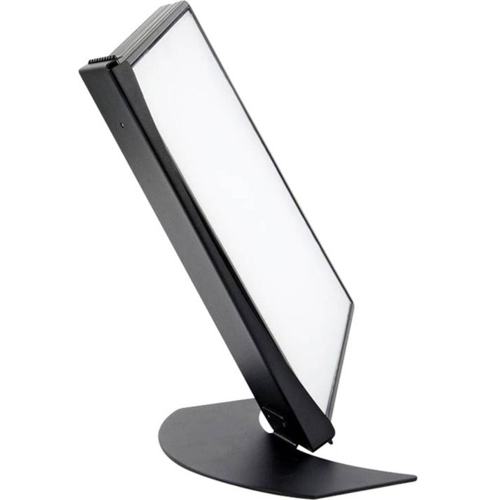 Desktop document display features a 10-pocket design to organize, protect and display your frequently referenced documents. Stylish ABS metal base with an ergonomic viewing angle allows readers to comfortably view each page. Compact size takes up less space on your desk and is adapted for TQM, 5S, KAIZEN and all LEAN management processes. Display pockets are made of nonglare polypropylene plastic for complete visibility in any environment. Two-sided, user-friendly openings allow easy document insertion and removal for quick updates. Corner closures ensure your documents stay secure.