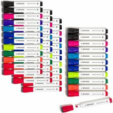 U Brands chisel tip dry erase markers feature bold and vibrant color inks that dry quickly, erase easily, and work great on any dry erase board surface. The markers also feature long-lasting, non-toxic, low odor ink that is great in any classroom, home, or office environment. This dry erase marker value pack features 48 markers in essential core colors. The dry erase markers feature a chisel tip for a bold and precise writing experience on any melamine, painted steel, porcelain, or glass dry erase surface. The built-in felt eraser into the marker cap enables quick, convenient, and precise erasing. For best results, re-cap the marker immediately after use and store horizontally.