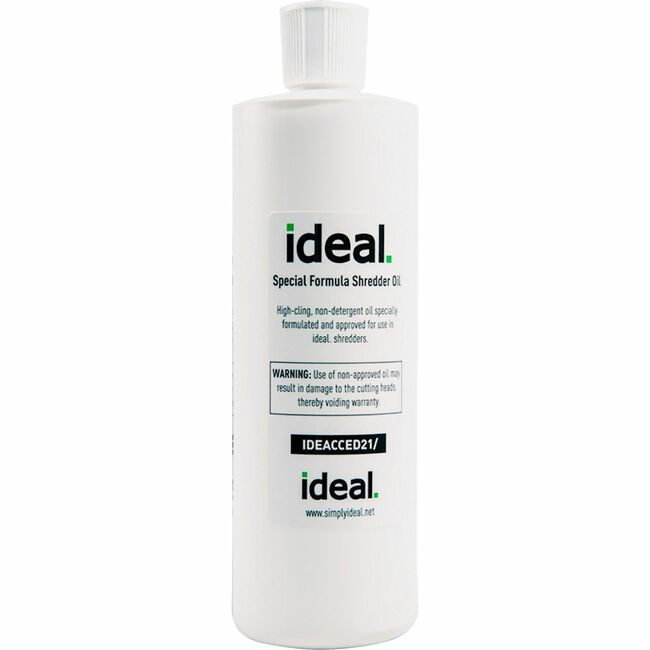 Special High-Cling Shredder Oil lubricates your shredder blades so it runs smoothly and effectively. This nontoxic, high-cling, nondetergent oil formula is made exclusively for Ideal brand shredders. Oil shredder blades for every 30 minutes of operation for cross-cut shredders and for every hour of operation for strip-cut models. Use oil in Ideal 2245, 2265, 2270, 2360, 2404, 2445, 2465, 2503, 3104 and 3804 shredders without automatic oilers.