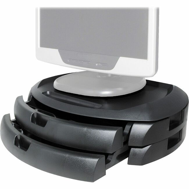 LCD stand with convenient organizer positions monitor at a more comfortable viewing height. Two drawers provide storage space and easy access to papers and supplies. Rubber feet protect your desktop surface. Stand is made of high-impact plastic.