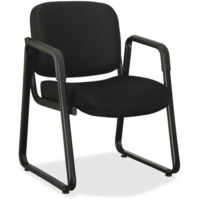 Lorell Upholstered Guest Chair - Black Seat Color - Fabric, Plywood Seat Material - Black Back Color - Fabric, Plywood Back Material - Metal Frame Material - Sled Base - Black - 1 Each