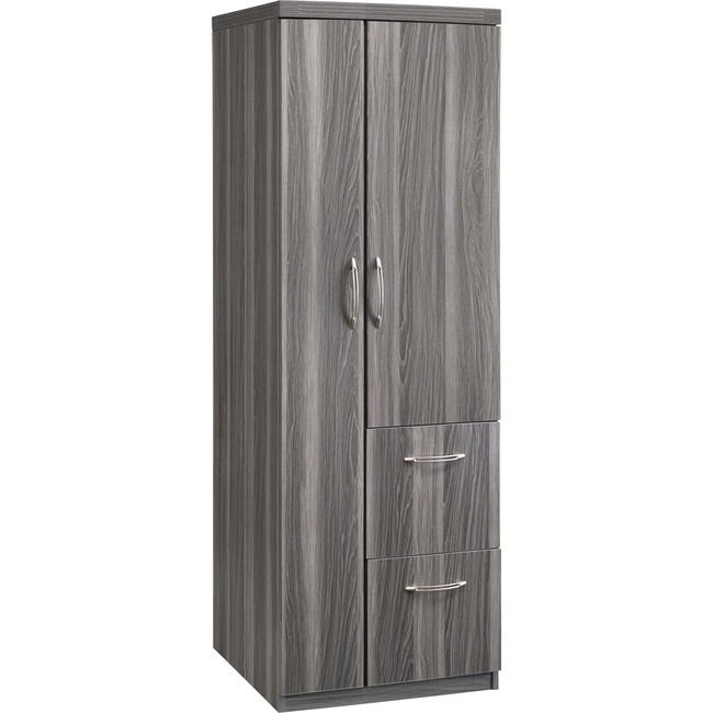 Marketing Information:Personal Storage Tower is part of the Aberdeen Series that brings genuine business practicality to every environment. Each quality piece balances the look of the wood with the performance of laminate. Tower includes a 7-3/4" wardrobe section with a hanging rod and four adjustable shelves. Storage section includes two adjustable shelves on 1-1/4" increments with a total of 5" of adjustment. File section includes two file drawers with curved metal pulls that feature a brushed nickel finish. Doors are made of manufactured wood. Tower is made of furniture-grade, medium-density fiberboard. Storage tower coordinates with Aberdeen Conference and Reception for a cohesive and professional look.
