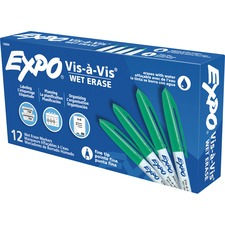 Expo Vis-A-Vis Wet-Erase Markers - Fine Marker Point - Green Ink - 1 Dozen