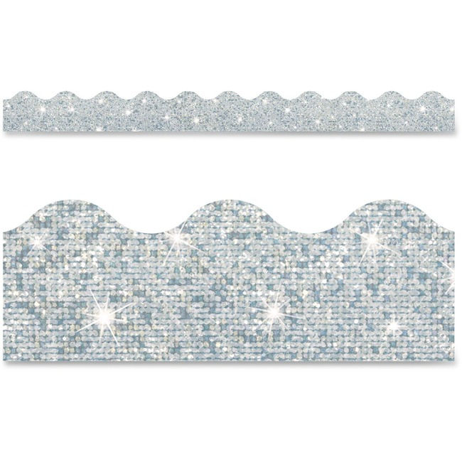 Trend Silver Terrific Trimmers Sparkle - Fun, Learning Theme/Subject - Skill Learning: Color - Rectangle Topped With Waves Shape - Pin-up - Layer patterns - Durable, Reusable, Precut - 2.25" Width x 390" Length - Silver - Paper - 1 Each