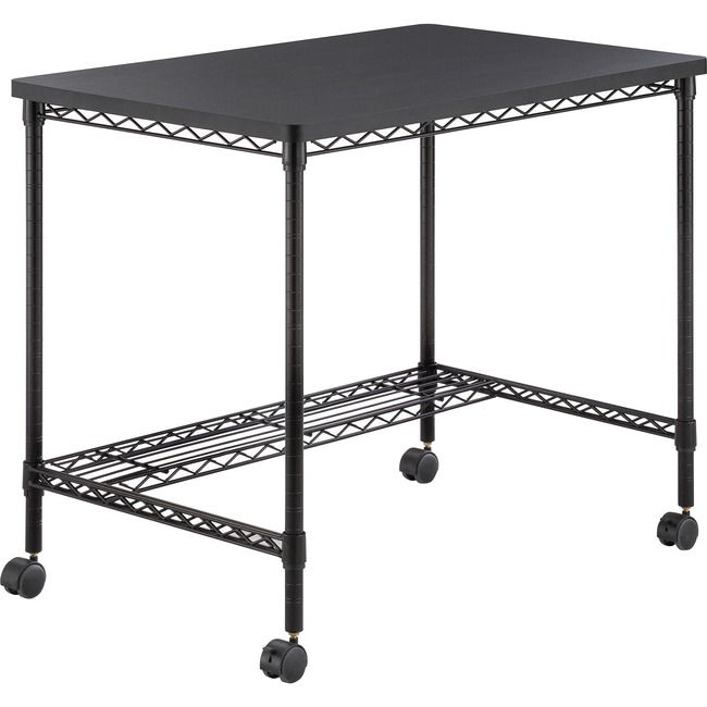 Be mobile at work when you need by using this mobile wire desk. It features a sturdy steel frame that makes it the perfect tool for on-the-go jobs. Durable wire desk was built to be both functional and adaptable. It is perfect for small office or home office settings. Made to last and impress, the wire desk features a black melamine top and black steel frame with powder-coat finish for durability. It comes complete with one sturdy, double-braced shelf for resting feet or light supplies and includes four swivel casters (two locking). Wire desk goes well with Safco Under-Desk Printer/Fax Stand and the Deskside Wire Machine Stand (both sold separately).