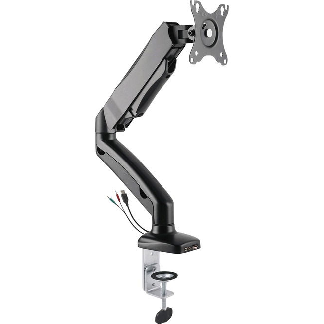 Marketing Information:Single-monitor arm in two sections offers versatile positioning and useful features. Adjustable swivel and tilt maximize viewing flexibility. Arm swivels 360 degrees from side to side while the monitor mounting plate swivels 180 degrees. Face of the mounting plate rotates 360 degrees and is 75mm x 75mm and 100mm x 100mm VESA-compatible. You can also tilt your monitor from negative 45 degrees to positive 90 degrees for multiple monitor viewing angles. Monitor arm is height-adjustable to easily improve eye level and posture for optimal comfort. Built-in spring gauge can be adjusted to suit various monitor weights. The 2.0 USB port and audio port in the bottom of the arm are convenient for supporting data transfer, charging and sound input/output. Pear-shaped VESA slot makes monitor installation much easier with a one-step slide-in. Mount through your desk grommet so no need to crawl under your desk to install. Built-in cable management allows an organized and neat work space.