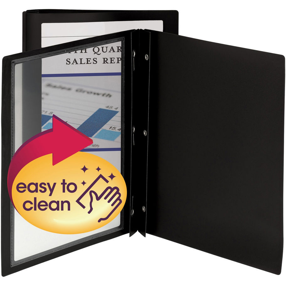 Personalize the cover sheet of your project, report or proposal and let it show through the clear front of this unique report cover. Stylish border frames the page with eye-catching color. Three-fastener closure securely holds up to 80 sheets of paper. Durable, acid-free poly is tear-resistant and water-resistant.